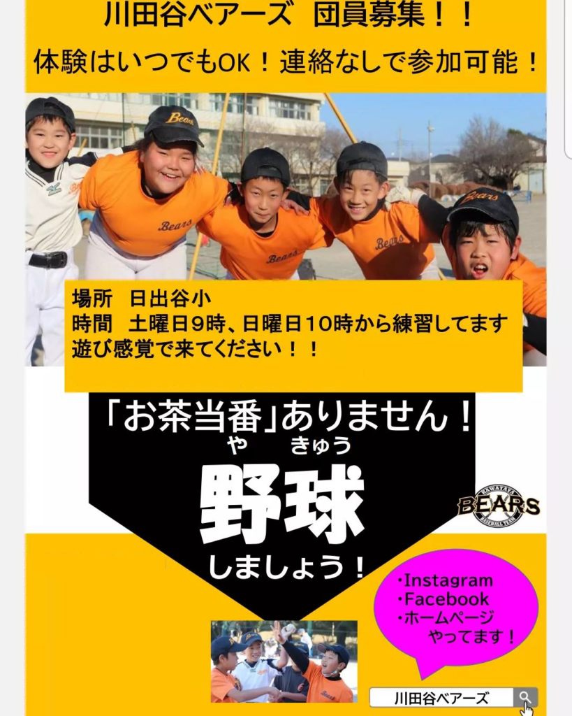 軟式少年野球チーム 川田谷ベアーズ